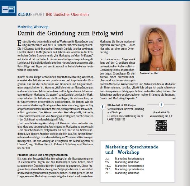 Expertin beim IHK-Online-Sprechtag: Ihr Marketing auf dem Prüfstand und Dozentin beim Marketing-Workshop – Erfolgreich starten mit einer klaren Marketing-Strategie für die IHK Südlicher Oberrhein